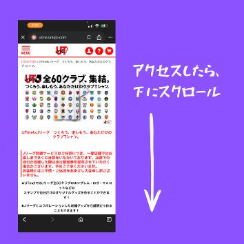 まずUTme!のJリーグ特集ページにアクセスします。開いたらそのまま下にスクロールしてください。